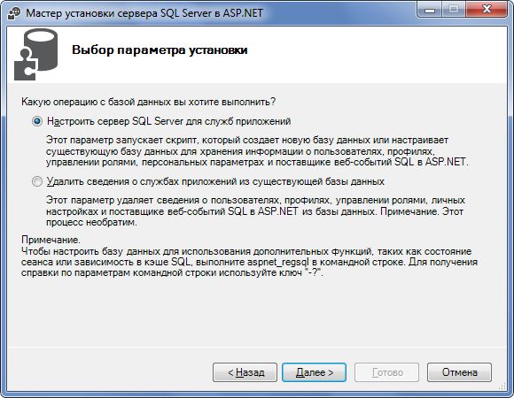 Но ничего сложного в создании такого набора таблиц нет — достаточно воспользоваться помощником — утилитой aspnet_regsql.exe (по умолчанию она расположена в папке C:\Windows\Microsoft.NET\Framework\\[Версия\]). |