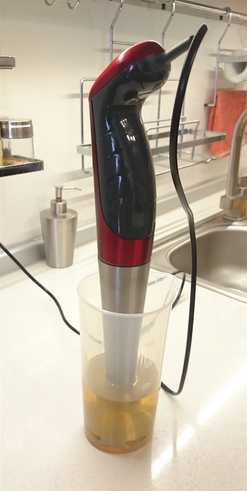 Из инвентаря понадобится погружной блендер. Обратите внимание — именно погружной блендер, ни кухонный комбайн с функцией блендера, ни миксер — только погружной блендер. Если любите майонез, то блендер можно купить только ради него. |