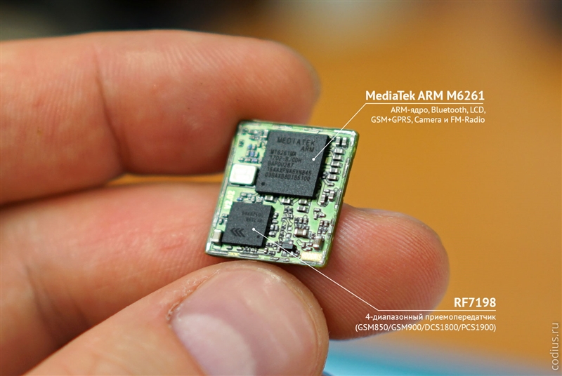Сердцем модуля SIM800L является чип Mediatek ARM MT6261. За GSM/GPRS-связь отвечает 4-диапазонный (GSM850/GSM900/DCS1800/PCS1900) приемопередатчик RF7198. |