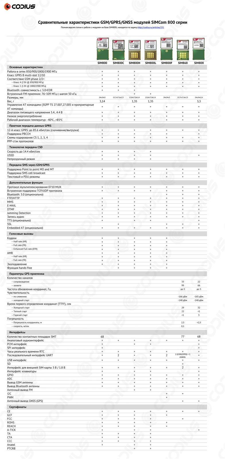 С полным сравнением характеристик модулей 800 серии можно ознакомиться в таблице: