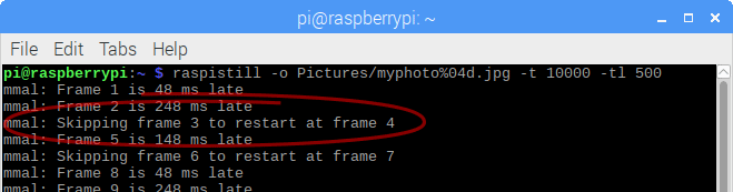 Сделать серию фото в течение 30 секунд (-t 30000), с паузой между фотографиями в 2 секунды (-tl 2000) и сохранить фотографии с именами myphoto0000.jpg, myphoto0001.jpg, myphoto0002.jpg и т.д. (-o myphoto%04d.jpg).