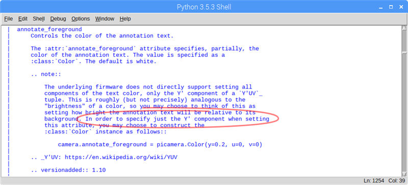 camera.annotate_foreground = picamera.Color(y=1, u=0, v=0) # Цвет текста - серый