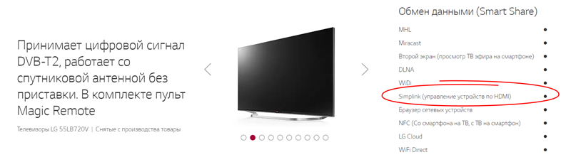 Для выяснения, поддерживает ли ваш телевизор эту технологию, нужно обратиться к производителю и техническим характеристикам модели. Например, в случае с телевизором LG 55LB720V, заявлено о поддержке Simplink.