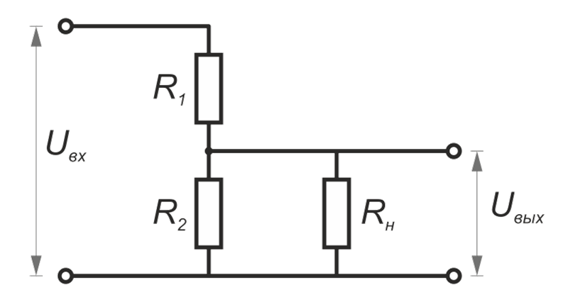 $$U_{вых}={U_{вх} \times {R_2 \over {R_1+R_2}} }$$