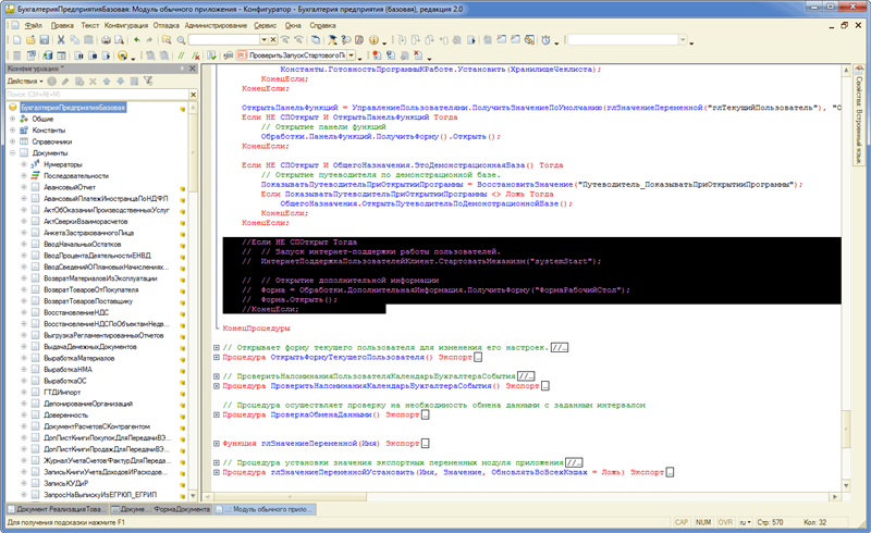 Если НЕ СПОткрыт Тогда // Запуск интернет-поддержки работы пользователей. ИнтернетПоддержкаПользователейКлиент.СтартоватьМеханизм("systemStart"); // Открытие дополнительной информации Форма = Обработки.ДополнительнаяИнформация.ПолучитьФорму("ФормаРабочийСтол"); Форма.Открыть(); КонецЕсли;