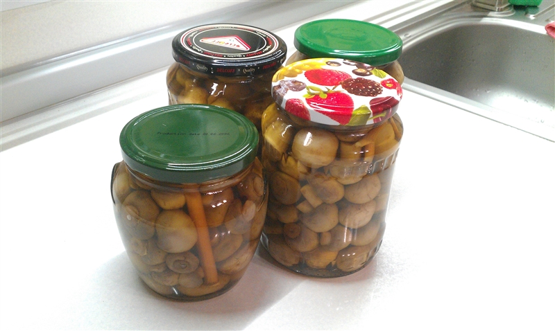 Если планируете съесть быстро (2-3 дня), то просто заливаете грибы закипевшим рассолом и закрываете посуду. Если планируете хранить более долгий срок, то погружаете грибы в рассол и варите их 10 мин. За это время они успевают увариться в 2-3 раза. Так что не пугайтесь, если в начале покажется, что рассола мало. После варки, раскладываете грибы по банкам (плотно укладывая) и закрываете. |