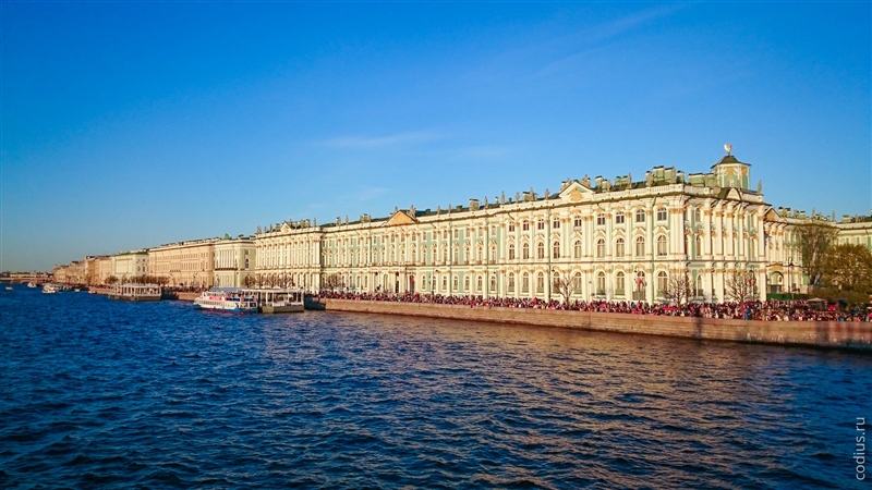 День 7. 8 мая. Пятница. Эрмитаж. Принимая во внимание тот факт, что Эрмитаж является одним из крупнейших музеев мира, и ходить нужно будет много, мы решили переплатить 360 руб. на двоих и купить 2 билета на официальном сайте. Как выяснилось позже — не зря. К концу 4 часового наслаждения историей и искусством шагомер показывал более 5 километров пройденного пути (только по Эрмитажу). После попытки представить дополнительные 3 часа стояния в очереди за билетами вызывали смешанные чувства. |