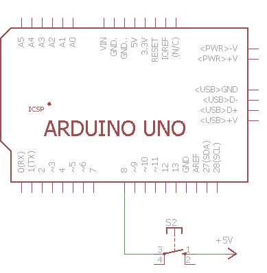 Плата Arduino Uno на портах ввода/вывода имеет встроенные подтягивающие резисторы номиналом 20 КОм, которые можно включить программно: |