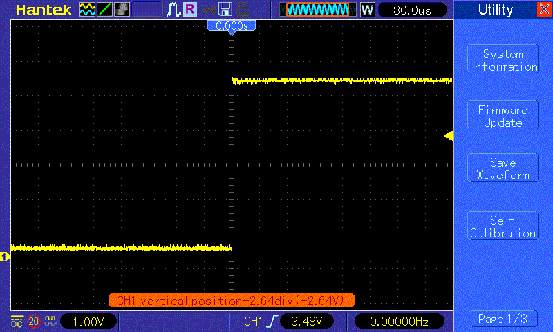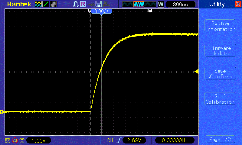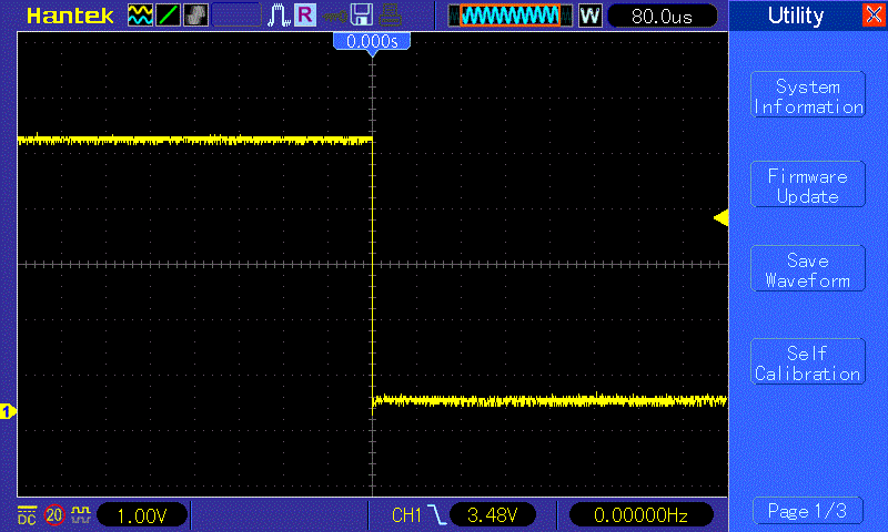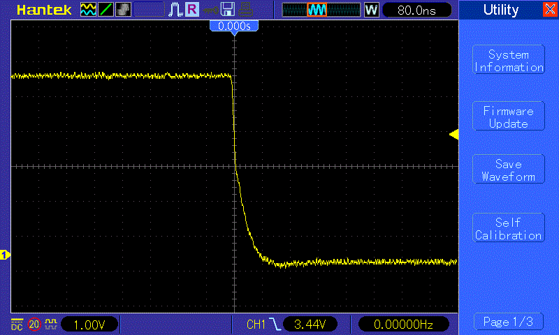 Дребезг при нажатии кнопки, зафиксированный осциллографом Hantek DSO4202C
