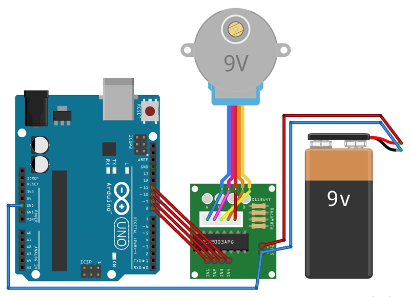 Скетч с использованием драйвера ULN2003A и внешнего источника питания на 9 В — step_motor_03_driver_9V.fzz (31,7 KB) |