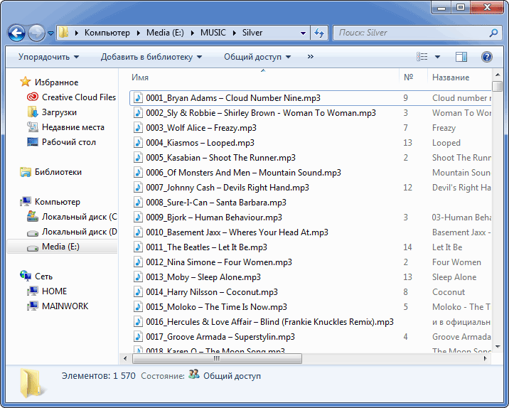 Слева, треки пронумерованы непредсказуемым образом, для воспроизведения в случайном порядке, справа — треки упорядочены по названию.