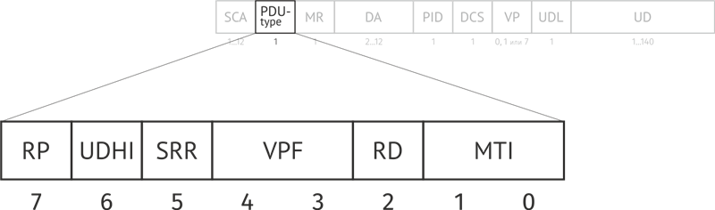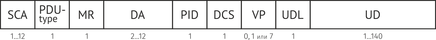 Установка срока жизни SMS — биты VPF (Validity Period Format) и поле VP (Validity Period) В примере используемом в статье, в целях упрощения, битам VPF было присвоено значение 00. И здесь стоит напомнить, что эти биты задают формат поля VP, могут принимать и другие значения, которые будут влиять на содержимое PDU-пакета, и, как следствие, отношение SMS-центра к отправленному SMS: