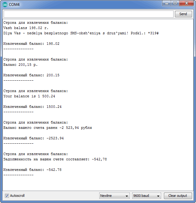 Далее, не составит труда получить необходимую информацию и задать требуемую логику приложения. Функция по «извлечению» состояния баланса из сообщения: |