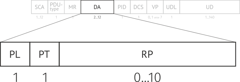 // Поле SCA добавим в самом конце, после расчета длины PDU-пакета