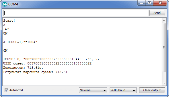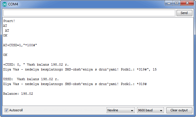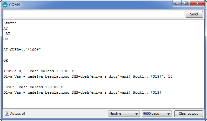 Serial.println("USSD: " + msgBalance); // Выводим полученный ответ