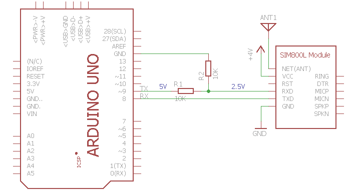 SoftwareSerial SIM800(8, 9); // RX, TX