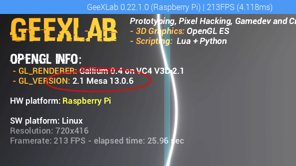 Как повторить тест?Скачать архив с пакетом GeeXLab (по умолчанию, в папку /home/pi/): |