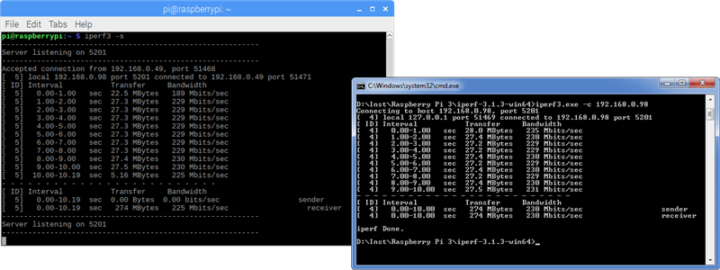 Таким образом, если Windows-ПК (192.168.0.49) выступает сервером, а Raspberry Pi (192.168.0.98) выступает клиентом, то необходимо выполнить следующие команды: |