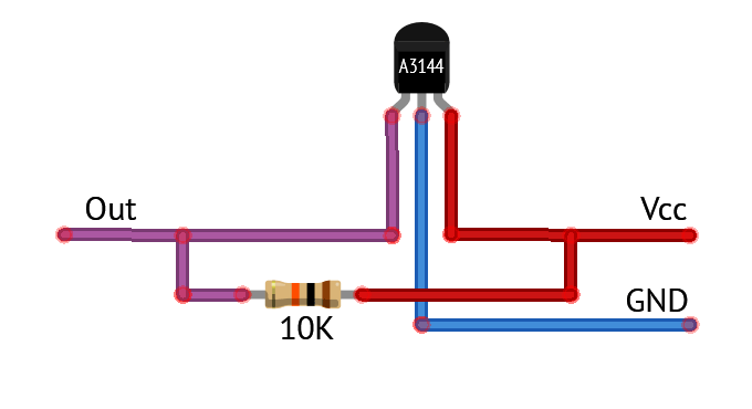 Датчик Холла — датчик, работающий на эффекте Холла (возникновение поперечной разности потенциалов при помещении проводника с постоянным током в магнитное поле). Датчик Холла A3144 — цифровой датчик (на выходе только 2 состояния — LOW и HIGH), идентифицирующий наличие магнитного поля, в непосредственной близости от датчика.